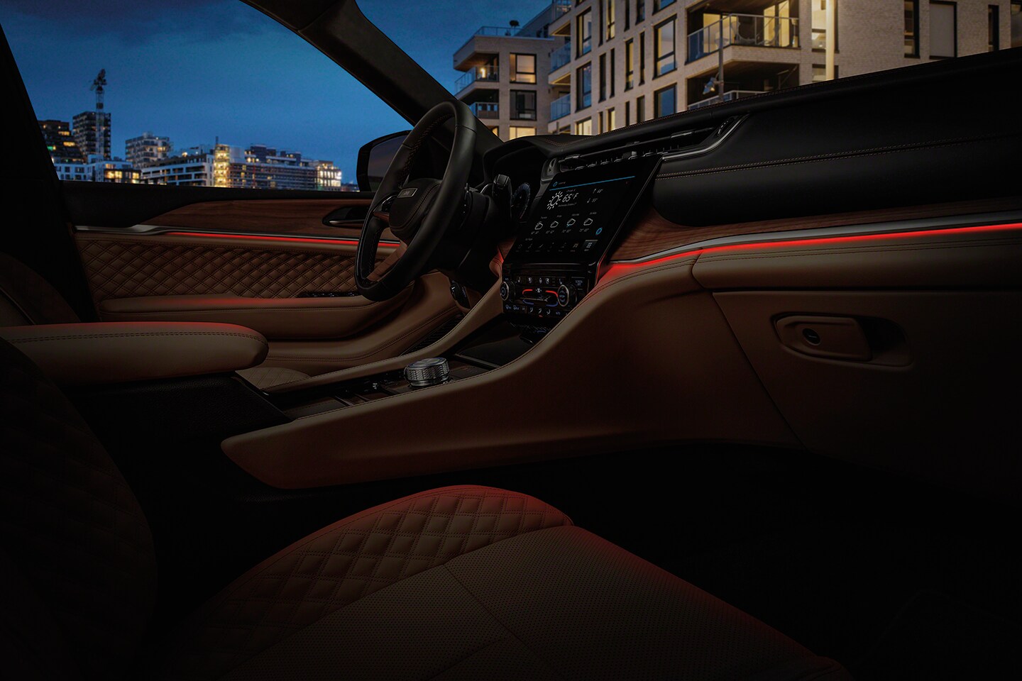 The Jeep Grand Cherokee L can accommodate the entire family comfortably. With three rows of spacious, generous seating, you will be hard-pressed to find a more luxurious midsize SUV on the market today. The Grand Cherokee L offers three unique seating plans, including a six-passenger setup, a six-passenger layout with a center console, and a spacious seven-passenger layout. Available interior features such as Ambient LED Lighting allow you to personalize your cabin mood and experience, while front-seat massage functionality gives you unrivaled luxury. Settling in for the ride has never been easier!