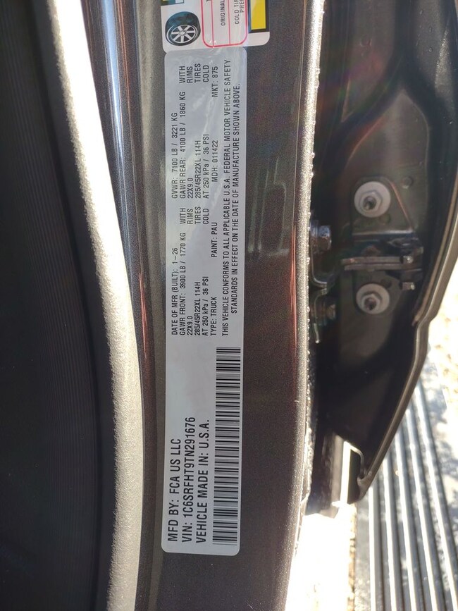 - VIN : 1C6SRFHT9TN291676