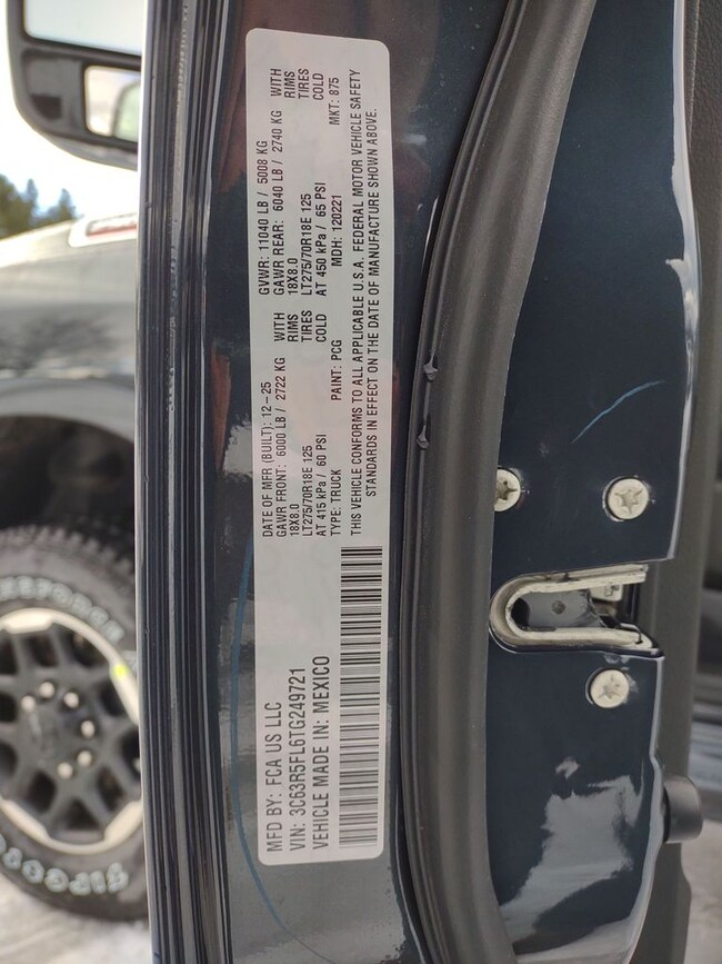 - VIN : 3C63R5FL6TG249721
